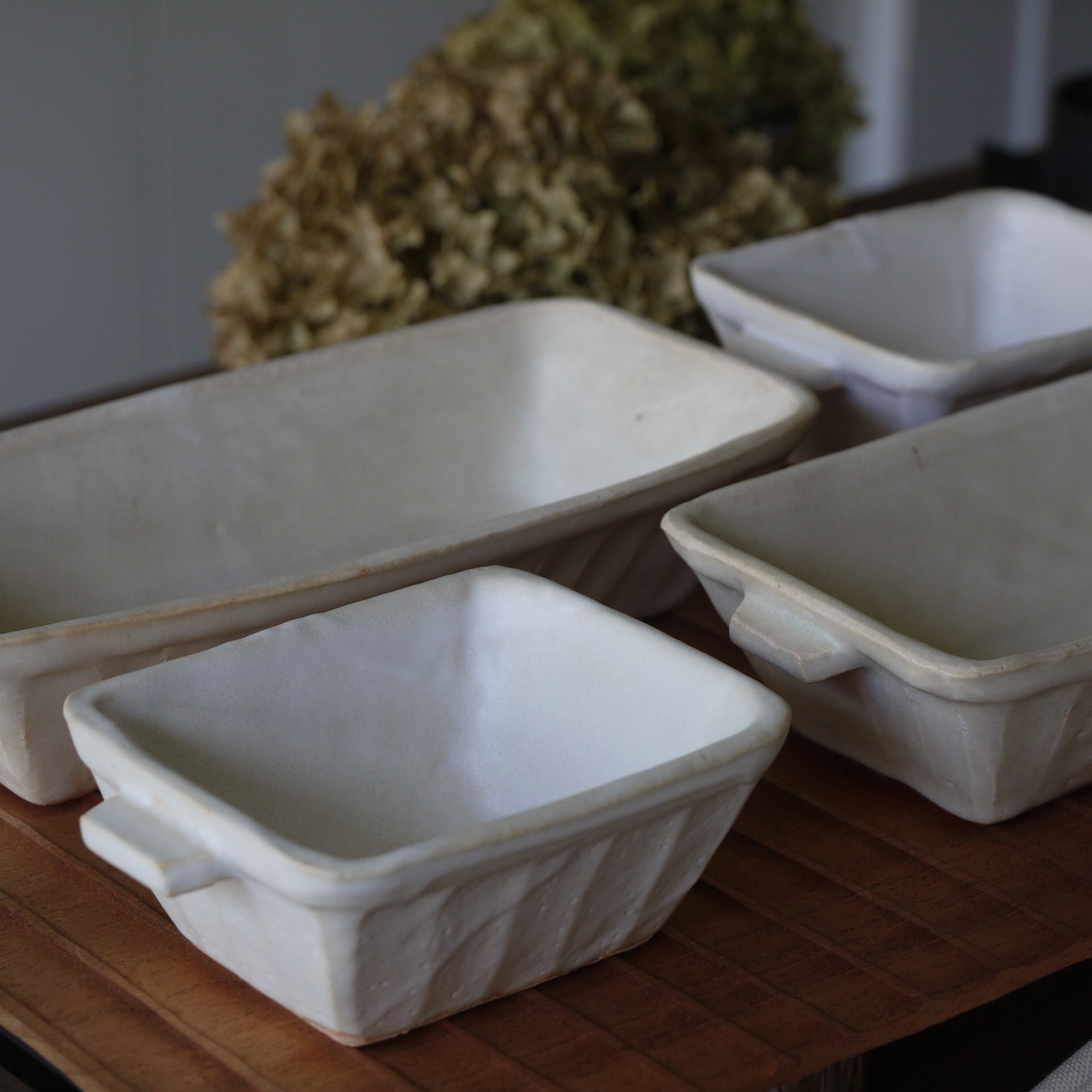 白い釉薬にぽってりと覆われた、やさしいグラタン皿。